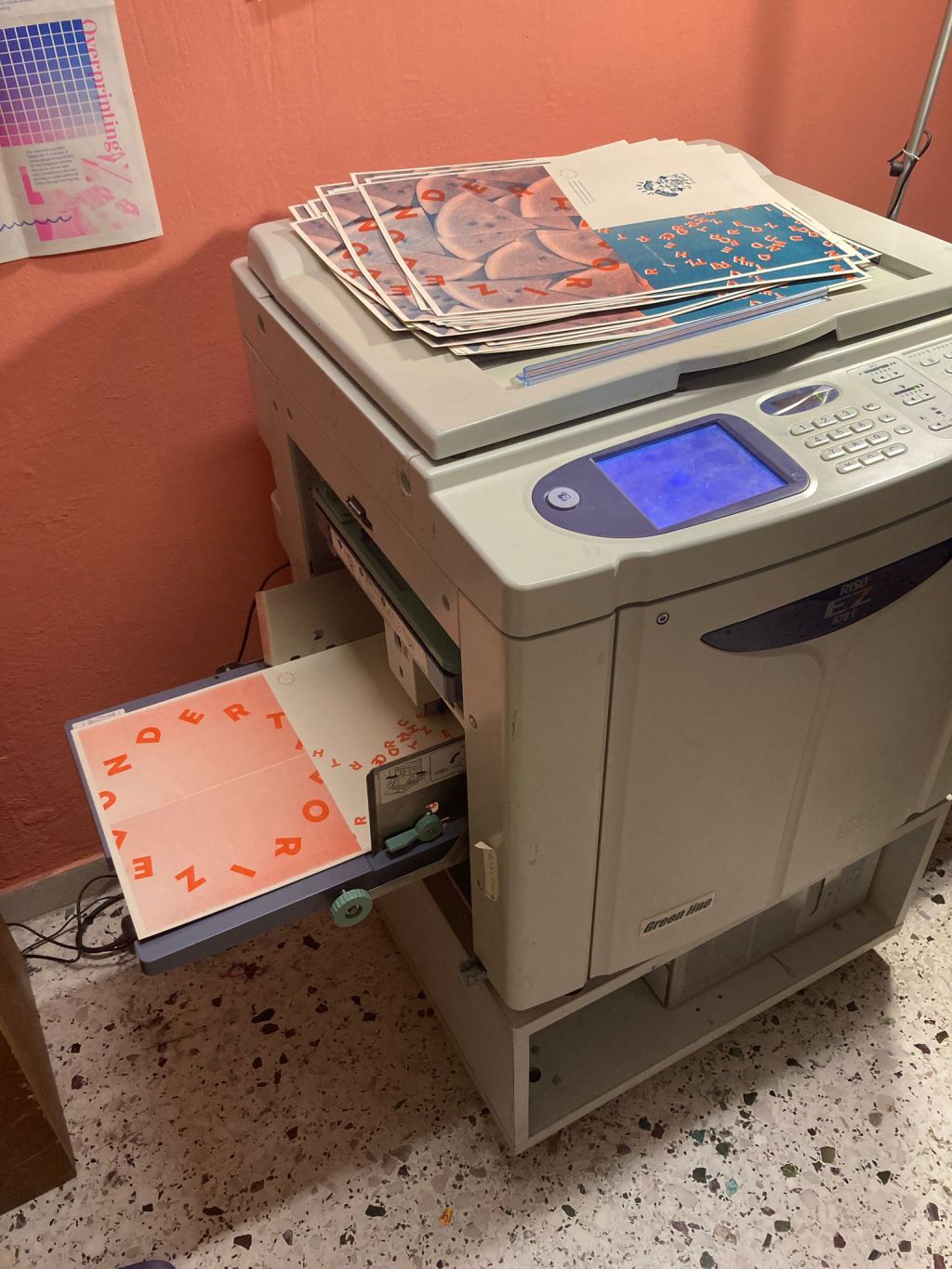 Undertheorized utilizes a risograph printing method to produce our fanzine. Riso is like a photocopier that operates similarly to a silkscreen printing process, using eco-friendly inks.
